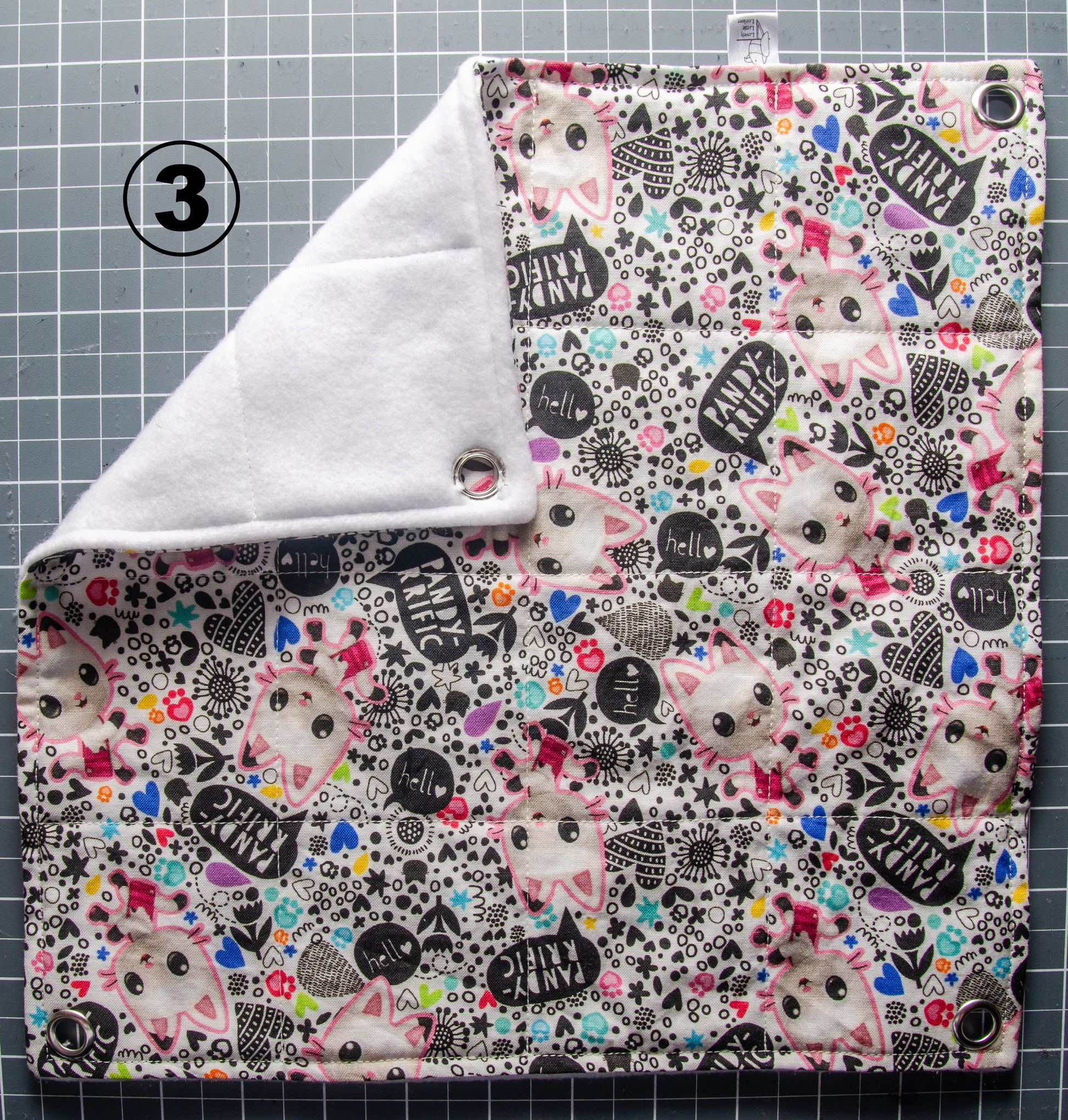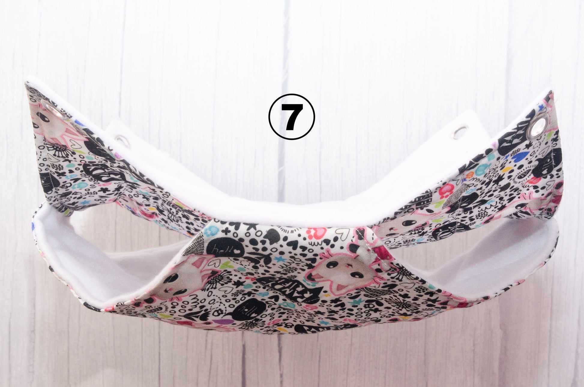 7. Pink/Grey/Green Cats Cube - Small cube hammock. Flannelette and fleece fabric.